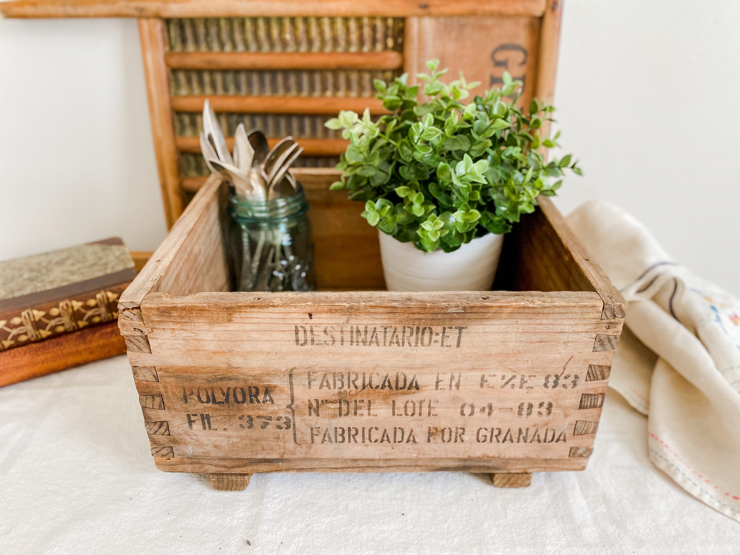 Vintage Italian Military Rifle Ammo Wooden Storage Crate Utility Box Decor 1802203246
